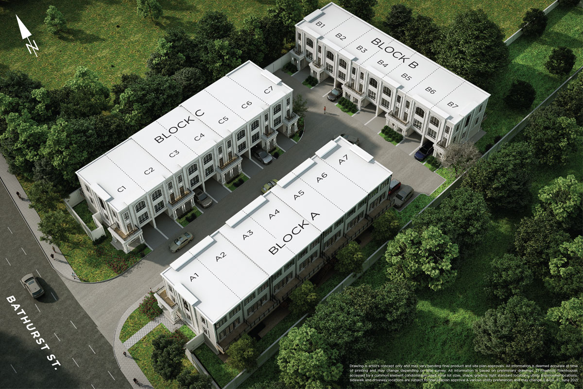 With central and convenient entry from Bathurst Street, Town Manors is nestled in an established and sought-after neighbourhood in Richmond Hill. Close to the amenity-rich corner of Bathurst Street and Rutherford Road, the Town Manors community is designed with its own quiet, private roads within. Well-connected to schools, parks, shopping, dining, trails and ravines, this new enclave of townhomes is a rare find.